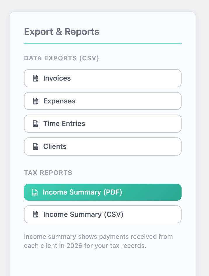 One app for invoices. Another for booking meetings. A different one for projects and tasks. And somehow you're still managing your income and tax estimating in a spreadsheet. Every new tool means another login, another monthly bill, another thing to check.